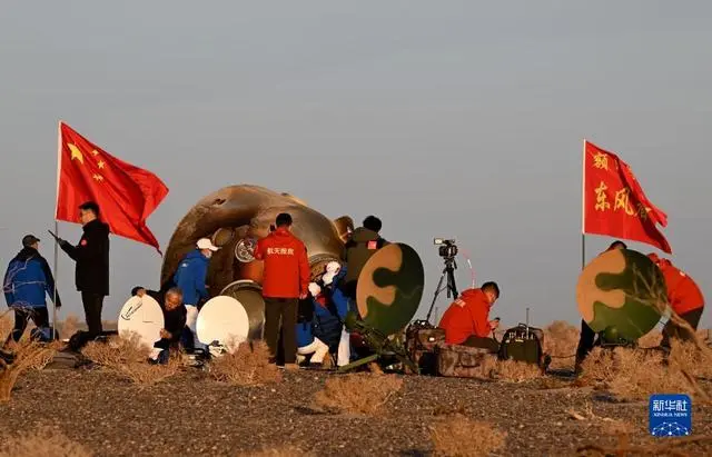 10月31日08:44分,神舟十六号载人飞船返回舱在东风着陆场成功着陆,航天员景海鹏、朱杨柱、桂海潮身体健康状况良好,神舟十六号载人飞行任务取得圆满成功!